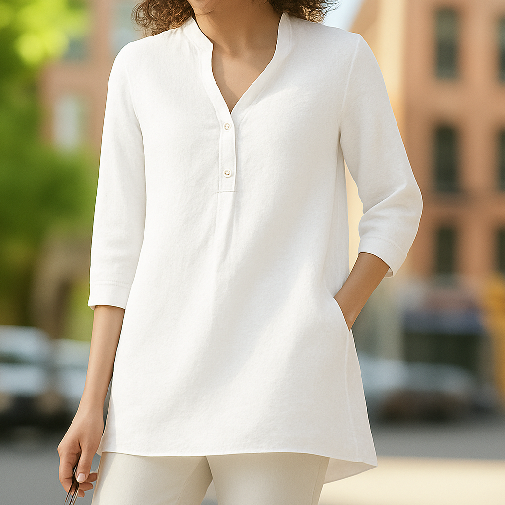 Effortless Fit & Flow – The subtle V-neck, button-down detail, and relaxed cut create a silhouette that flatters without trying too hard. It's style made simple.