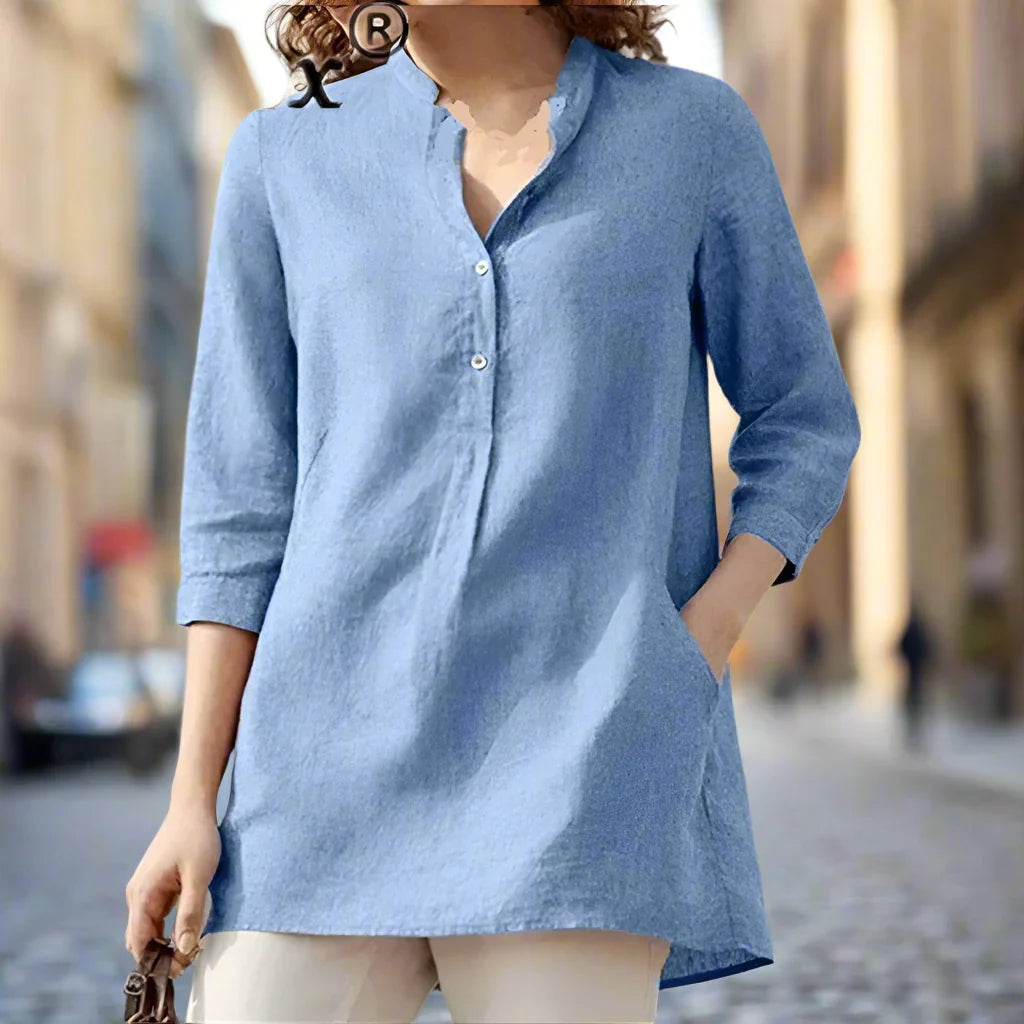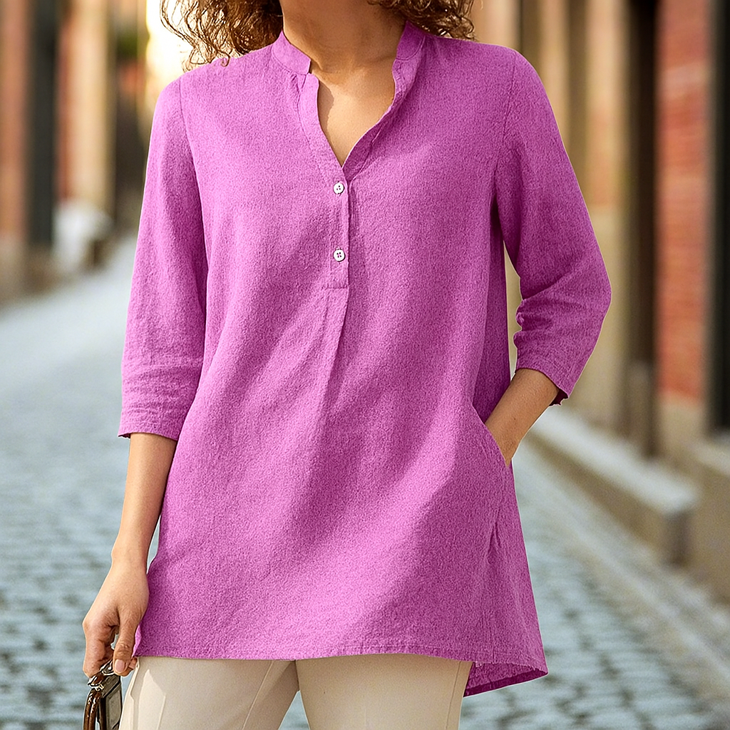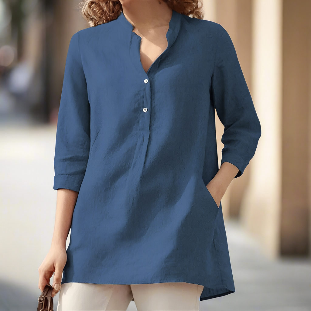 Picture this: a quiet morning, the sky stretching wide above you, and you're wrapped in the breezy elegance of the Layla V-Neck Blouse. Designed to blend relaxed charm with timeless sophistication, Layla is the blouse that makes every day feel a little more graceful—whether you're exploring the outdoors or enjoying a slow, soulful moment indoors.